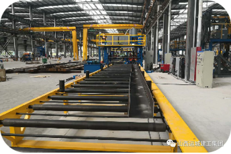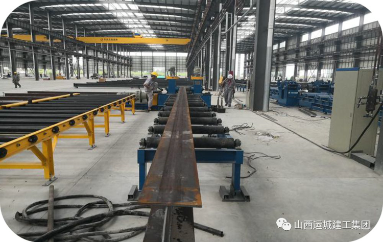 切割好的板材通過(guò)組立機(jī)兩端點(diǎn)焊初步成型為H型鋼,由輥軸輸送準(zhǔn)備進(jìn)入下道工序---組焊。