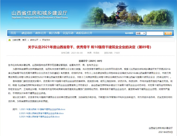 本次全省被認定為優秀骨干建筑企業的共有12家企業。根據《山西省骨干和優秀骨干建筑業企業評選范圍及量化標準》要求,參評企業2020年度建筑業產值須在40億元(含)以上或在智能建造、裝配式產業基地創建和裝配式建造等方面取得突出成果。同時具有較高的施工技術、質量安全管理水平和科技創新能力,具備高質量發展潛力,對本地區建筑業發展具有較強帶動和影響力。